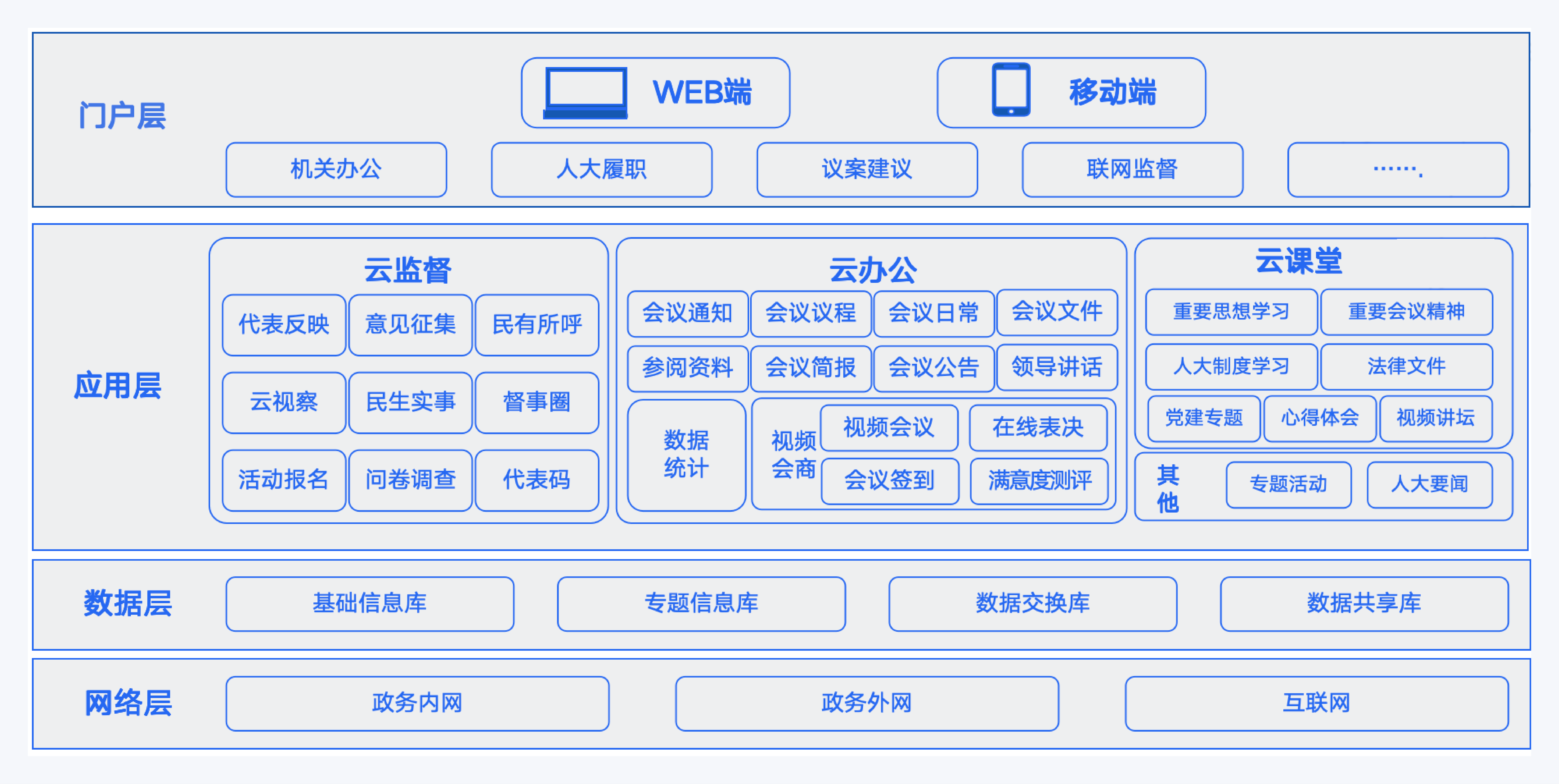 集成会议通知、议程、文件、简报等功能,实现会议从筹备到执行全线上化,提升人大办公效率